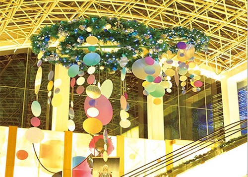 商场中庭本身具备导示性,而商场中空悬挂的吊饰更容易让消费者在各个楼层中很轻易的可以识别中庭的方位,进而对明确商场的布局和自己的行进方向有着更好更快的认知。